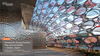 Additionally, the pavilion incorporates upcycled materials sourced from Panasonic Group’s own factories. Offcuts and waste materials such as artificial marble used in kitchen systems and prism sheets used in televisions have been repurposed for interior finishes and lighting fixtures, particularly in the reception areas. These recycled elements, along with the cyclical motifs embodied by the butterfly forms, contribute to a façade that symbolizes humanity's role as part of a continuously circulating world.