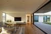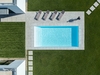 This block with a simple structure, is carved into a U shape, allowing the design of an interior private patio that extends to the detached pool, at the far end angle of the triangular site. This shape allows to make, a clear distribution of the living space and house program, embracing the patio with maximum privacy and controlled solar exposure.
