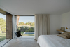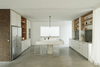 The intervention updates a house built in the 90s on the outskirts of Madrid. Originally, it consisted of a cubical volume, made of red brick with a flat tiled hipped roof. In the SW corner, a double-height oblique porch interrupted the volume. Hundred-year-old pine trees surround the house. It seemed important to us to blend in with the surroundings. The idea of lining it with cork was the starting point. The cork blends in with the bark of other trees, guarantees durability, and improves the thermal properties of the façade. The appearance is similar to that of a stone tile but with a warmer and lighter appearance. We decided to cover only the façades of the cube with cork, maintaining the hipped roof and leaving the brick painted black in the auxiliary constructions.