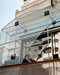 Waves of glass brick and clouds of metal mesh solve a non domestic space that could remain as such. Two curved walls run smoothly through both levels gently dissociating private and public. A longitudinal axis is emphasised by two metallic masks. The back façade is a compound layering of glass, mirror, metallic cutouts, steady patters, and fiddly handrails. The front is a misty mass of clouds.