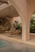 The pool was covered with the same material as the walls, enhancing the monolithic sensation of the complex. Thanks to the water that