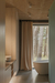 The exposed CLT panels, which also serve as the primary structure, give the walls a natural, unfinished aesthetic. Glued pine veneer is used to craft doors and built-in furniture, maintaining the wood’s continuity and creating seamless transitions throughout the space.