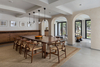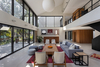 With the studio's ethos of being sustainable and creating contemporary spaces using local material, the floor and bathrooms are finished in a local grey slate tile. All windows are finished in black aluminium and doors are made of recycled Burma teak stained in a black linseed oil polish. The furniture is made of teak wood, while colourful art, accessories, and area rugs bring in pops of colour to the interiors.