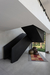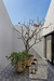A freestanding black metal staircase serves as a strong highlight feature and connects both floors. Floor to ceiling glass windows allow for a strong visual connection to the mango trees outside. A metal canopy over the entrance and outside the living room allows for nature to blur the boundary between inside and outside. Nature in the form of bougainvillea is slowly allowed to creep onto the built fabric, creating naturally shaded semi-covered spaces.