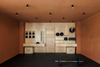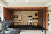 A birch plywood wall, in addition to serving as an aesthetically pleasing feature, was designed to support training equipment, keeping it easily accessible for users.