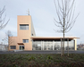 The entrances are marked with exposed-concrete overhangs and large window openings connect the object with the neighbourhood, directing views to the surrounding nature.