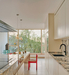 Access is from the upper level, where the house presents itself as a regular and hermetic volume. As the terrain descends, it becomes evident that the house barely rests on the rock at the rear, instead extending its "legs" (concrete screens) to find support on the facade walls and central core along the slope. A cantilevered staircase, connecting the pedestrian access and the parking area, descends and leads to the main level, where a large terrace welcomes visitors. This terrace extends seamlessly from a spacious kitchen-dining area, which opens onto the outdoor balcony through four large sliding windows. Once inside, the connection between indoors and outdoors is fluid and constant: the surrounding trees, with branches brushing against the façades, and the distant views of the valley and mountains, are revealed in every corner, creating a continuous dialogue between the house and its environment.