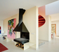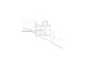 On the lower floor, a central block houses the staircase, bathroom, and pantry, freeing up the entire perimeter for a continuous flow of kitchen, living room, and viewing space. The latter faces the valley and features a built-in bench running along the entire glazed façade. These interconnected spaces are designed for both habitation and contemplation of the landscape. As a result, the house lacks a conventional entrance; instead, the arrival experience is defined by the large cantilevered slab—an extension of the kitchen—which features a large in-situ concrete and ceppo di gré stone island dining table, welcoming guests through food and drink. The interior staircase creates a double-height void, emphasizing visual and functional connectivity between floors within this continuous space. It then passes through a circular opening before emerging onto the roof through a square turret rotated 45°, allowing uninterrupted spatial flow and maintaining panoramic views from the rooftop.