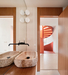 The house’s design follows the golden ratio in both plan and elevation, achieving a visual balance between simplicity and sophistication. The volume appears straightforward, with three of its façades—facing the entrance and neighboring properties—featuring carefully placed, restrained openings, some of which are covered with lattice screens to control sunlight. Even the first-floor balconies are inward-facing for greater intimacy. In contrast, the façade overlooking the valley is fully open, allowing for uninterrupted views. This openness is further emphasized by a subtle shift in color: a very light yellowish tone differentiates this façade from the earthy hues of the rest of the house, blending with the local soil while maintaining a distinct, almost paradoxical familiarity.