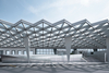 On the airside, a striking new architectural feature was introduced—a steel canopy with a distinctive “web-like” structure composed of equilateral triangles, supported by seven truncated pyramid-shaped columns. The canopy’s geometry is echoed in the design of new staircases and ramps with brushed metal cladding, creating an elegant and iconic silhouette visible from afar. The redesign also reflects the need to separate operational flows, introducing independent entrances for VIP guests, tour groups, arrivals, and departures to ensure smooth and secure circulation.