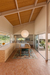 Daily life is organized around the main patio. The living and dining rooms open out toward it and extend to a large south-facing porch that shields the glazed openings from excessive sunlight